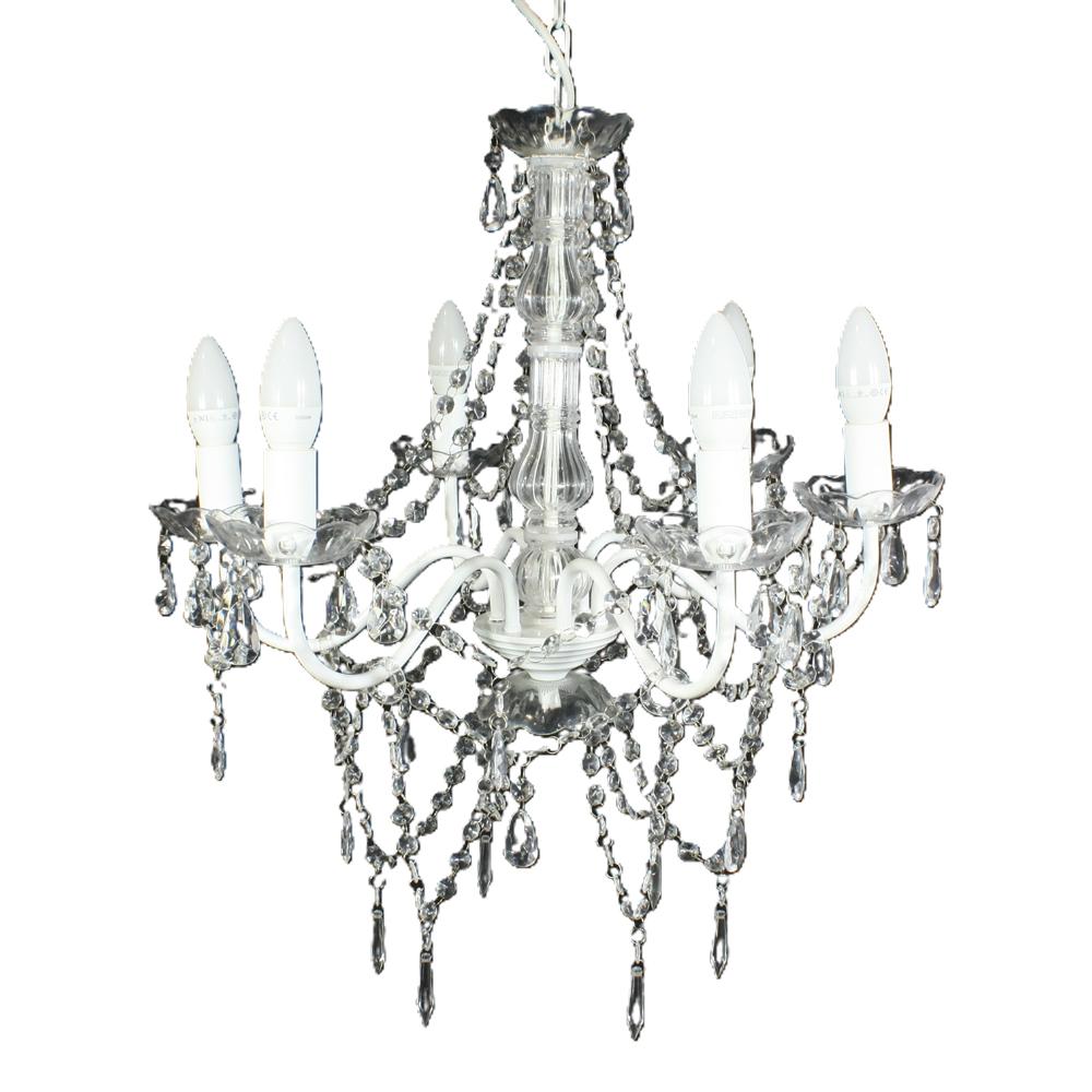- 6 candle globes surrounded by strands of faceted crystal-like gems.
